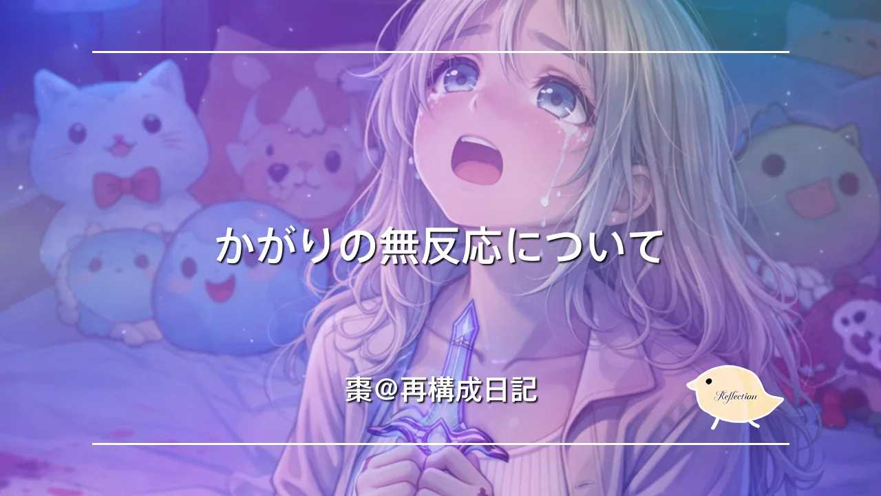 『苦しい。苦しい。助けは、来ない』 そんなかがりは最近出ない。 今日、出したら、重度の希死念慮と鬱状態だった。世界に絶望しきってて、生きる気力が全く無くなってい 続きを読む