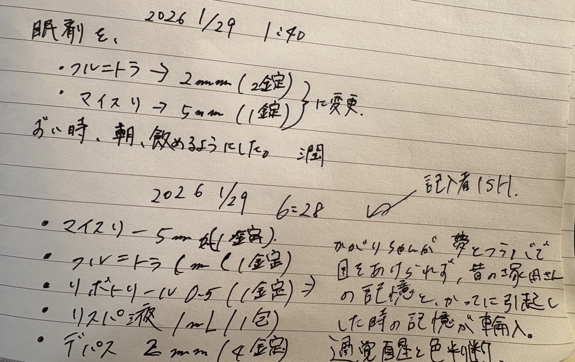 一応、機能飲み過ぎてるから減らした眠剤の記録。