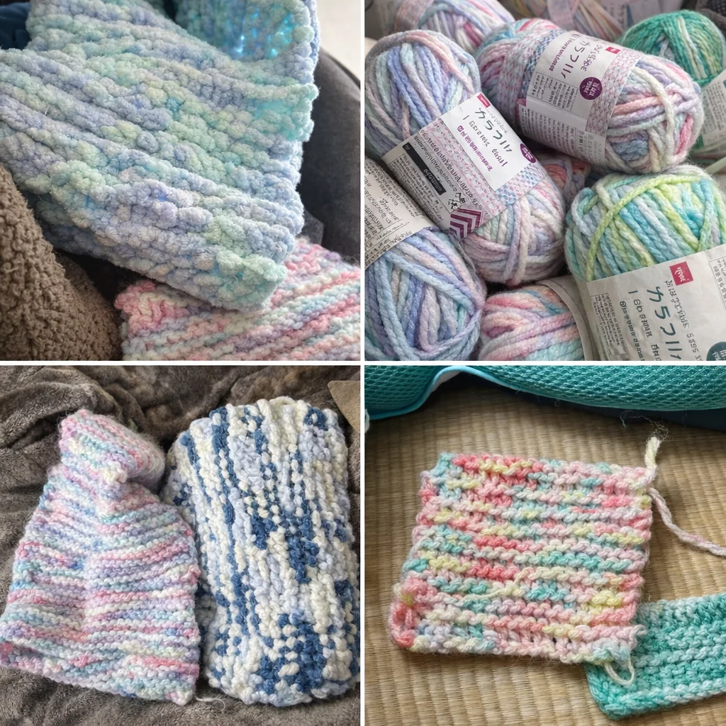糸色 渚月と糸色 棗(公的な苗字、以下略)この二人は棒編みでマフラーから小さいコースターまで作れる。今後、水槽用の安全な使い捨てアクリルタワシを販売予定。運用はBASEかな?X拡散を狙いながらやっていく予定。既に我が家はアクリルタワシ使い捨てで掃除とかお手入れしてる。